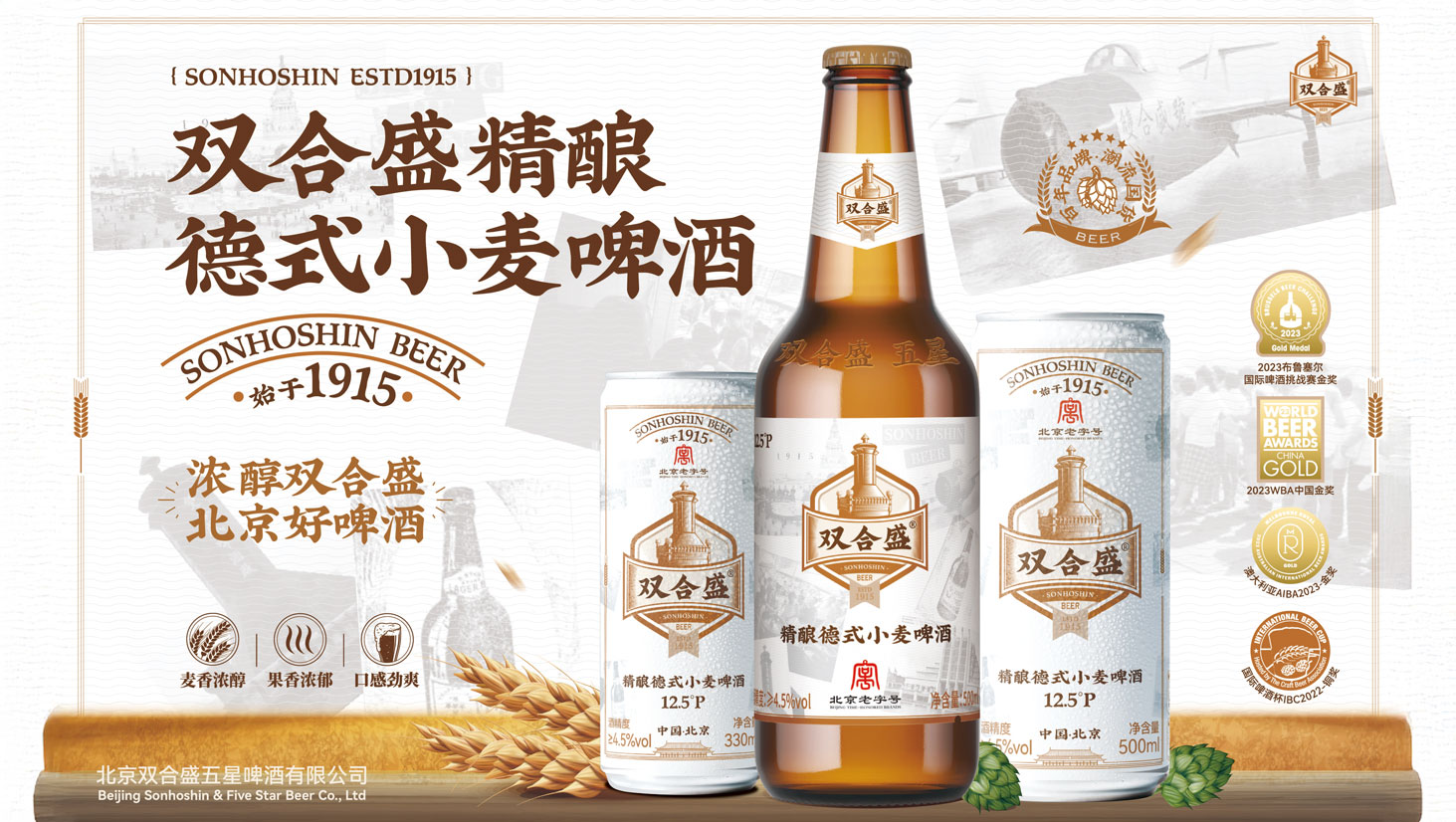 Sonhoshin & Five Star Beer traces its roots back to the Beijing Sonhoshin Soda Factory, which was founded in 1915 as China's first domestically funded brewery. It stands as a true witness to a century of brewing evolution. In February 2024, it was recognized by the Ministry of Commerce as a "China Time-honored Brand", highlighting the brand’s rich heritage and enduring vitality.