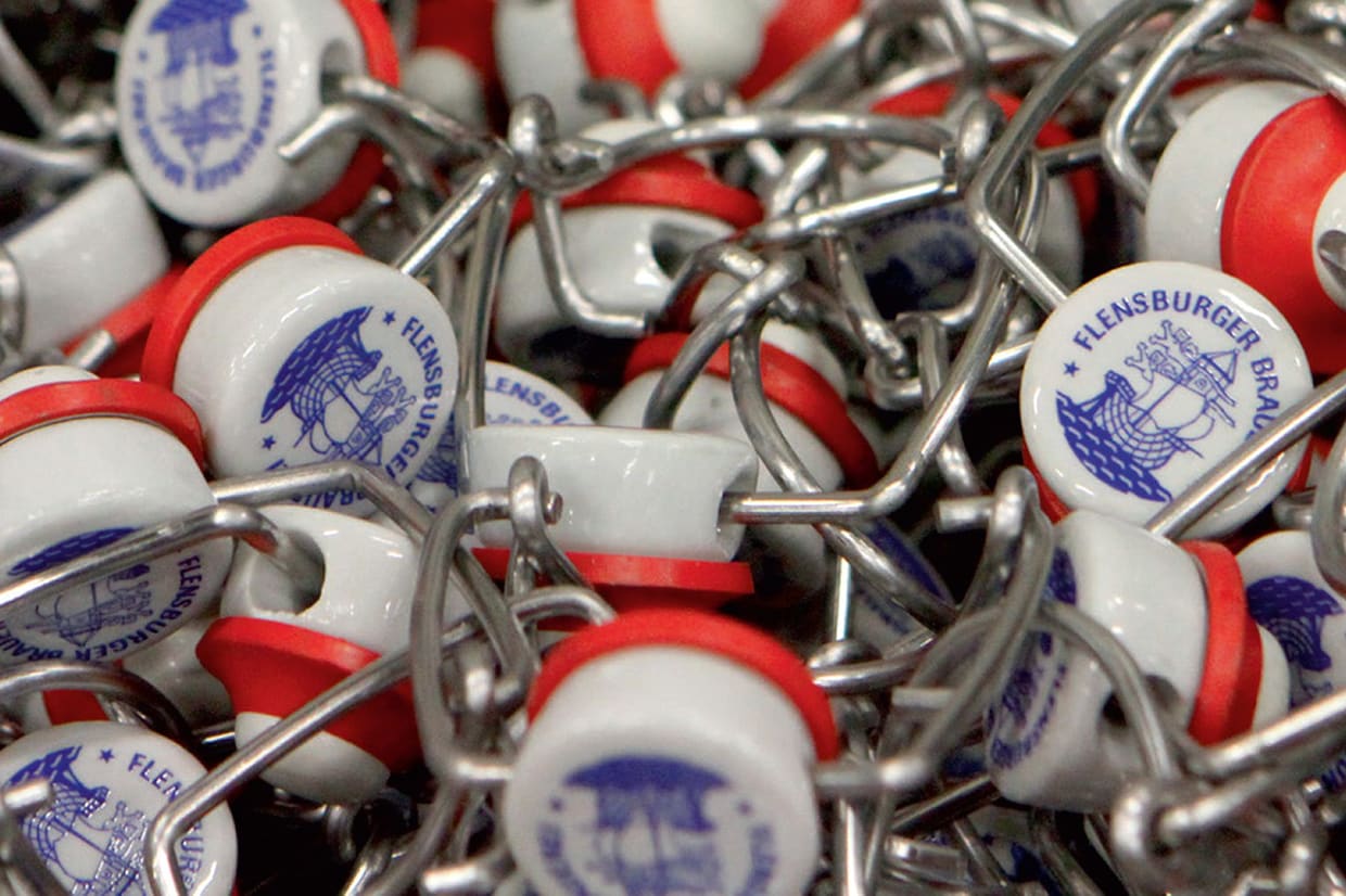 The brewery’s portfolio currently consists of 17 products, including the new “Strand-Lager” (beach lager) and the “FLENSBURGER KÜSTENLIMOs” (Flensburger’s coastal lemonades). All of these drinks are bottled right in the centre of Flensburg – on some of the world’s biggest and technically most advanced lines for swing-stopper bottles.