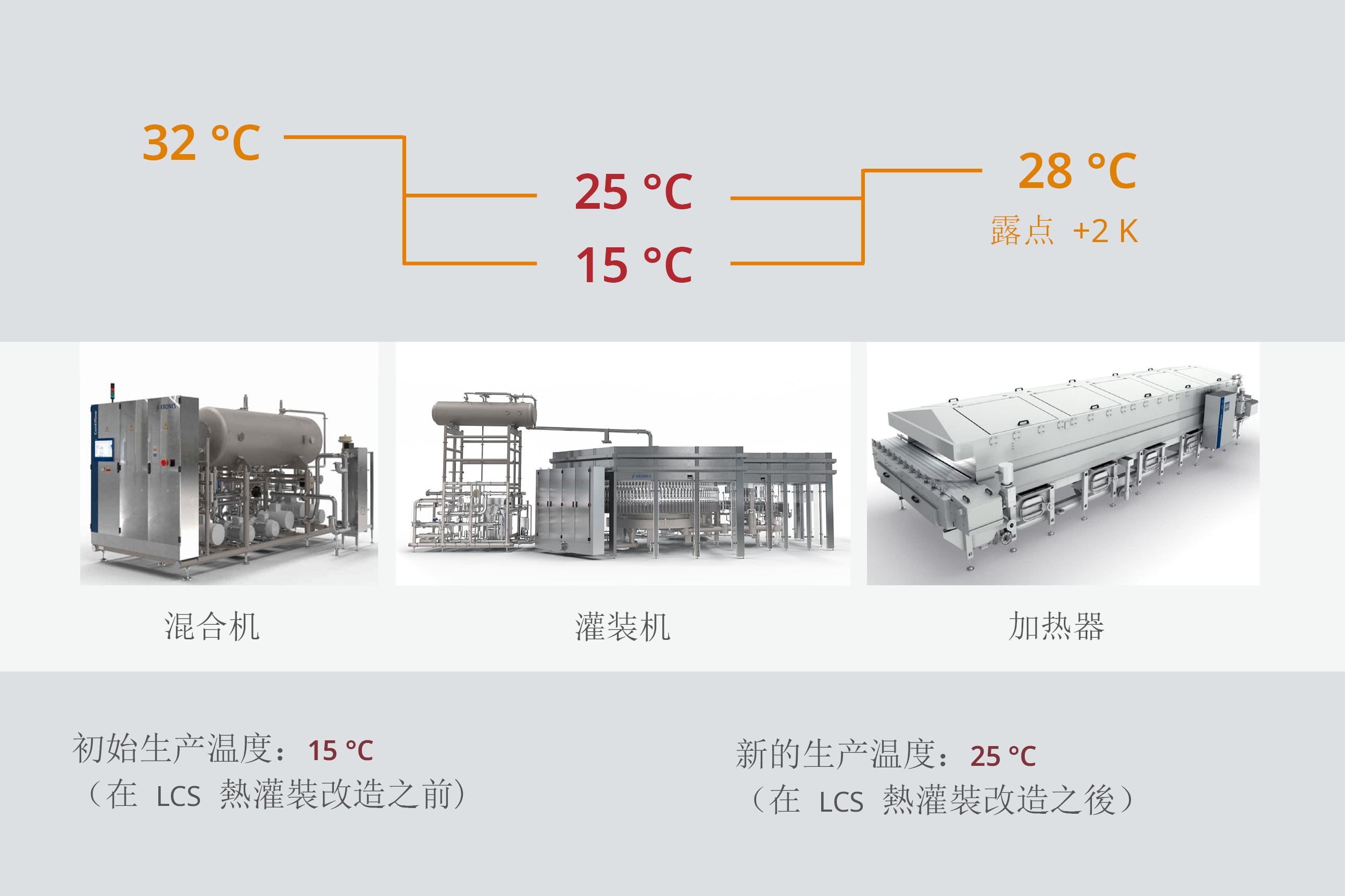 此前,冷却后待灌装的容器在灌装后必须重新加热以防止出现冷凝水。采用LCS Warmfill解决方案后,不再需要这部分能耗。